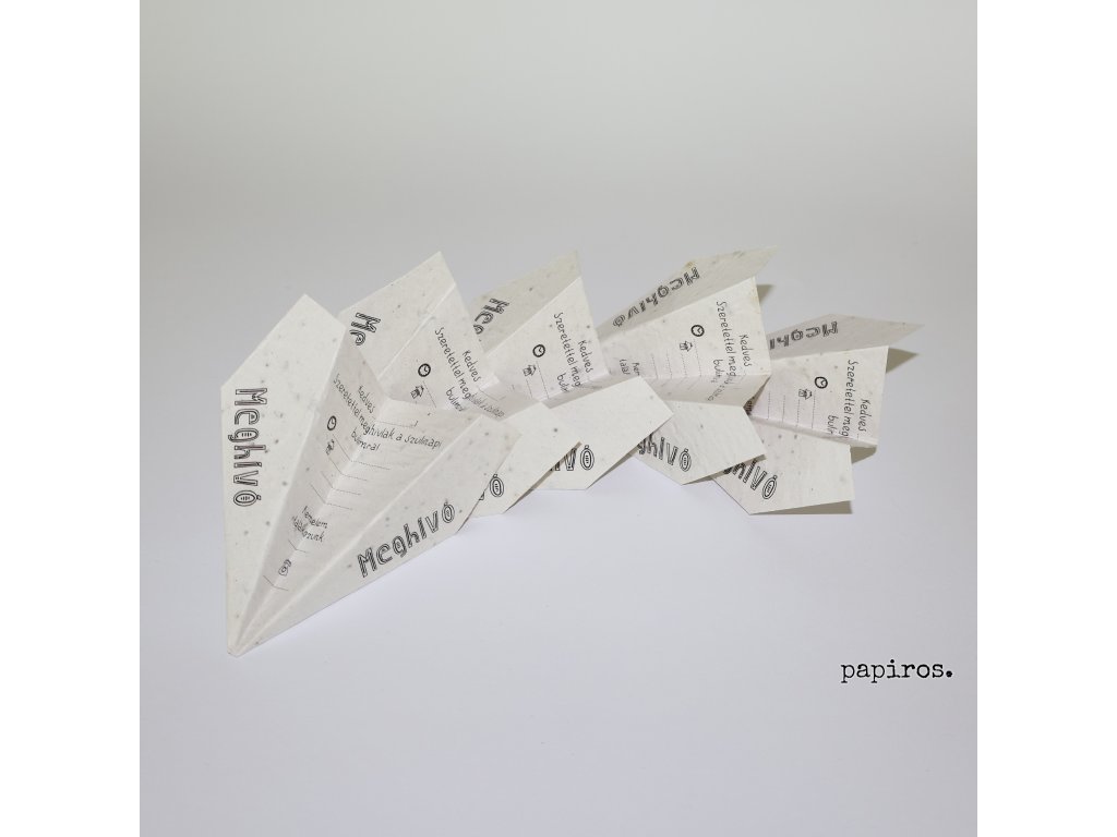 5 db papírrepülő formájú meghívó gyerekzsúrra magpapírból.
